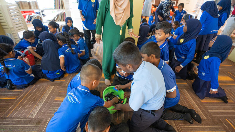 Vi er med til nogen undervisningstimer og oplever skoledagen som den er for de lokale børn. På Maldiverne har alle skolebørn skoleuniform. Hver skole har sin uniform.