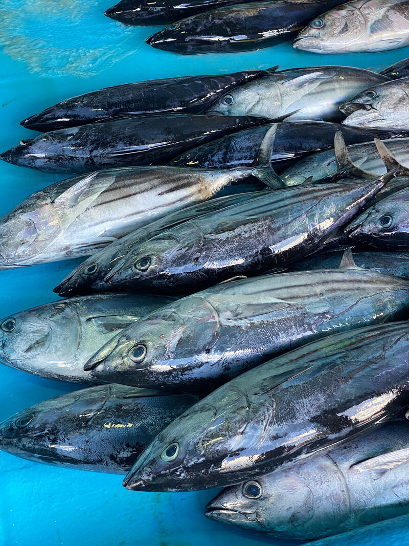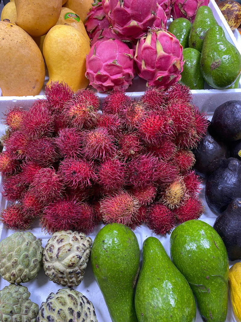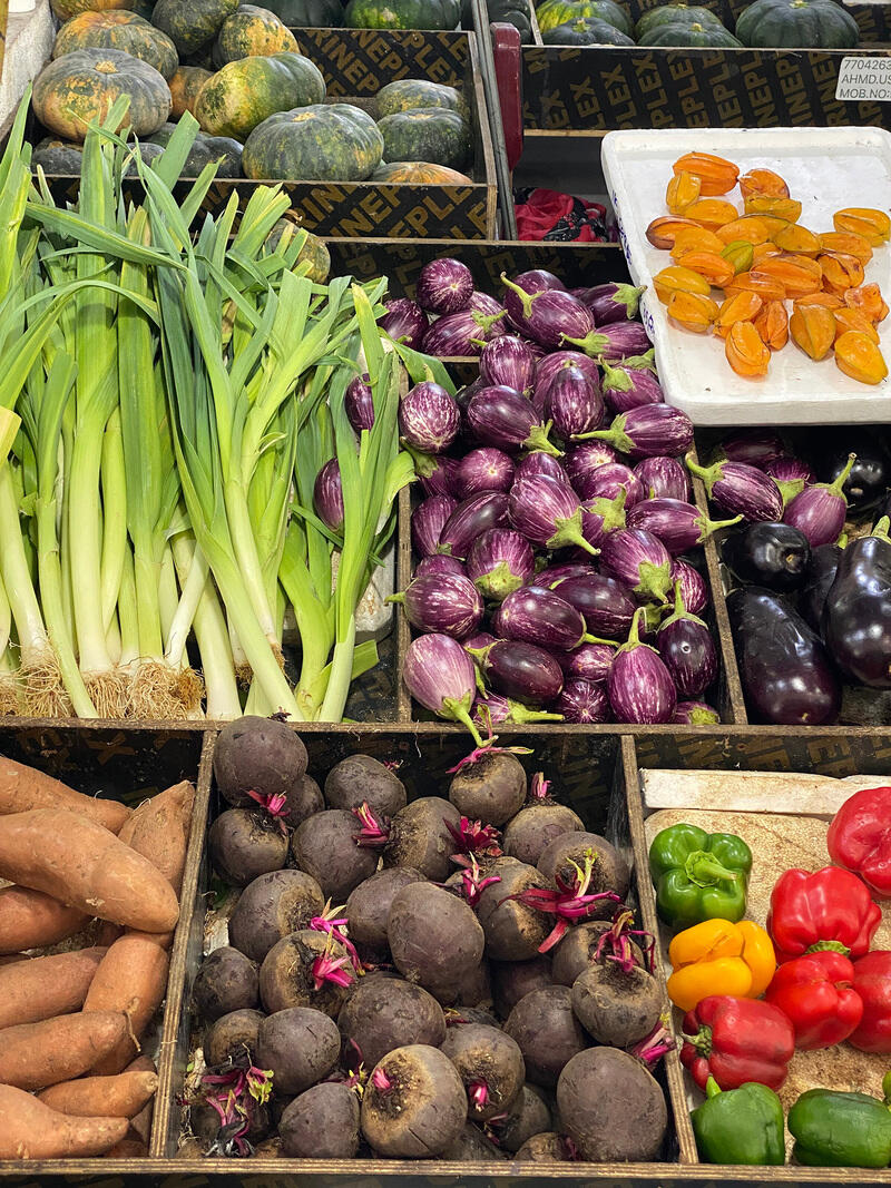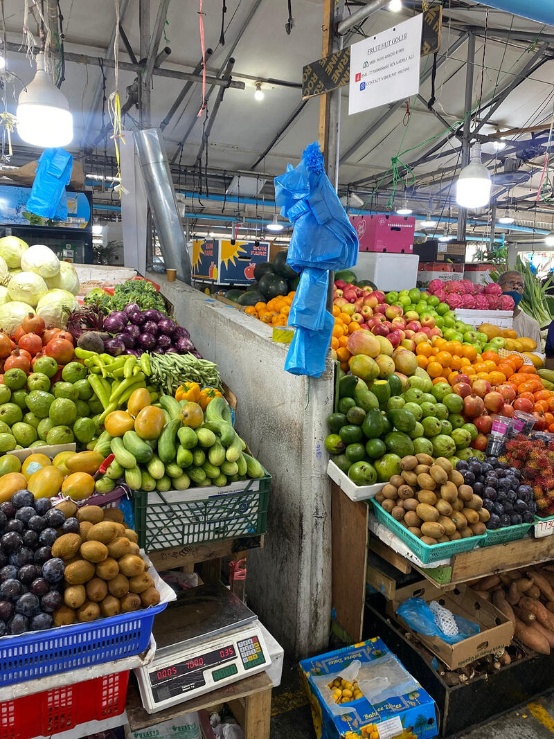 Der spises frugt og grønt og fisk i lange baner. Indtrykkene fra boderne er utrolig smukke og farverige. Det er et kæmpe mønster og farveindtryk som møder øjet overalt.