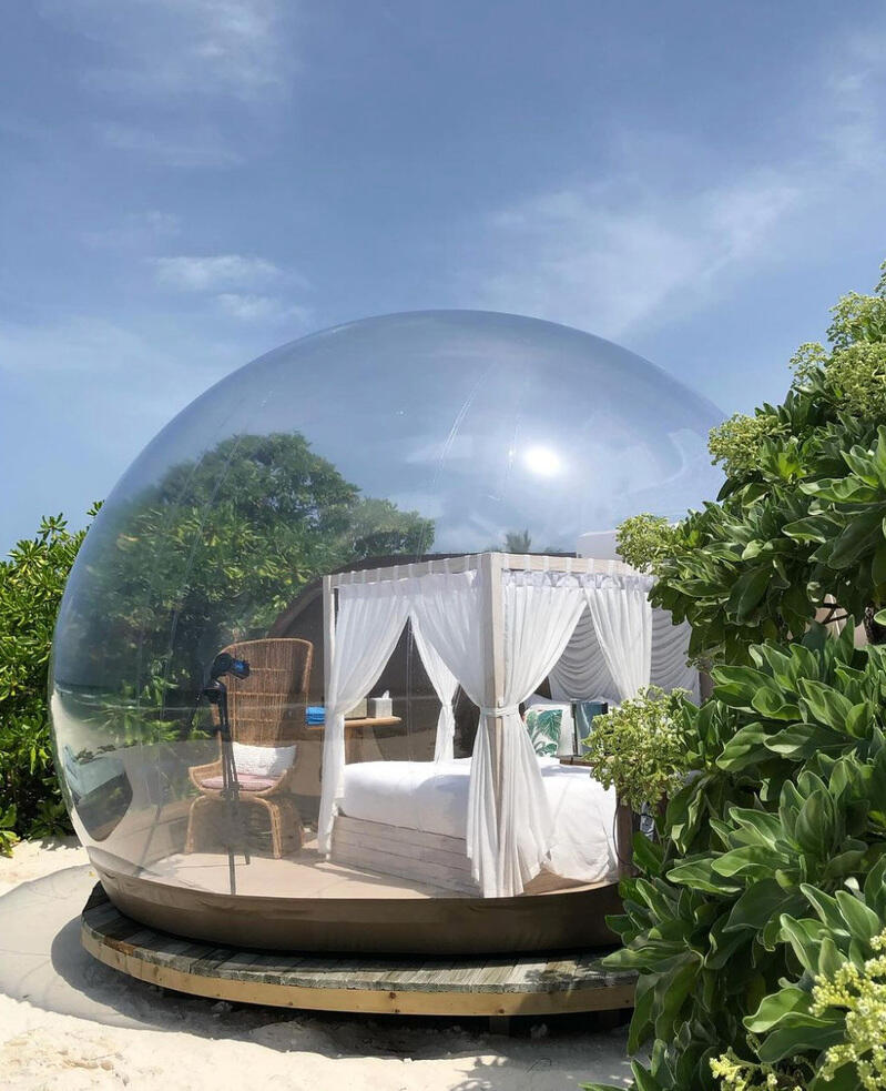 When you visit a resort island on a day trip, you're typically allowed to use all the resort's activities and restaurants etc. but you can't enter and see the rooms, this is reserved for resort guests.